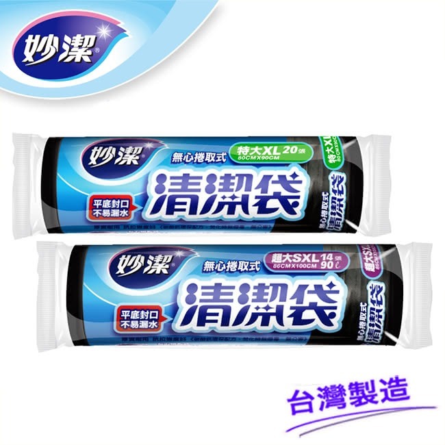 妙潔-無心捲筒垃圾袋/清潔袋 特大 20枚 80*90cm/超大 14枚 86*100cm