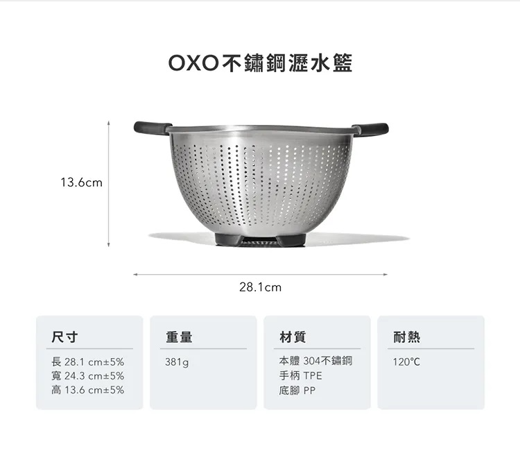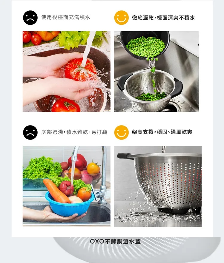 OXO 不鏽鋼瀝水籃-恆隆行公司貨 304不鏽鋼本體洗碗機適用