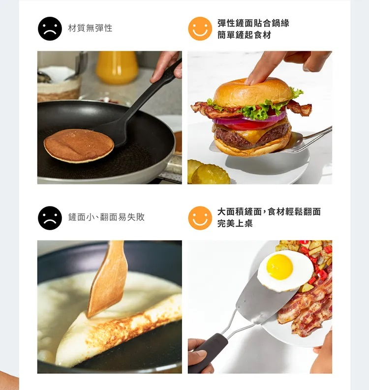 ★大面積鏟面適合盛裝魚、荷包蛋、鬆餅等食材