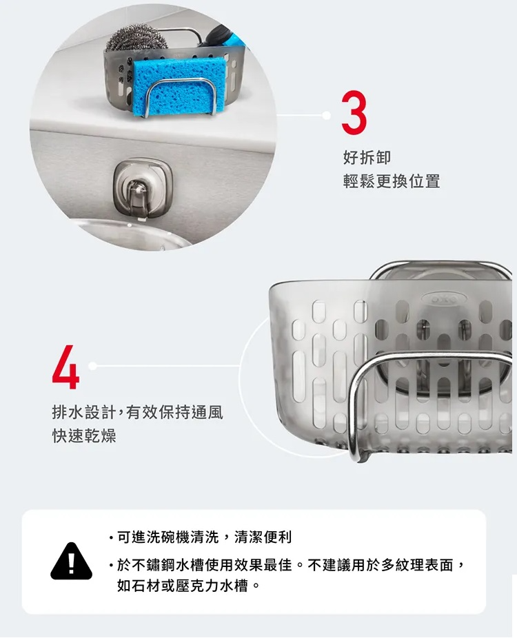 OXO 吸盤置物架 廚房置物架 水槽置物架 菜瓜布架 耐熱80度 可使用於洗碗機