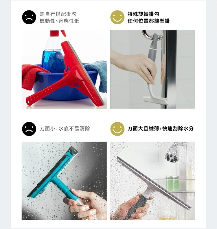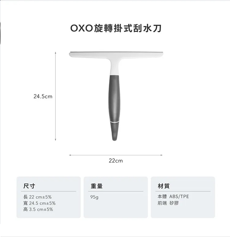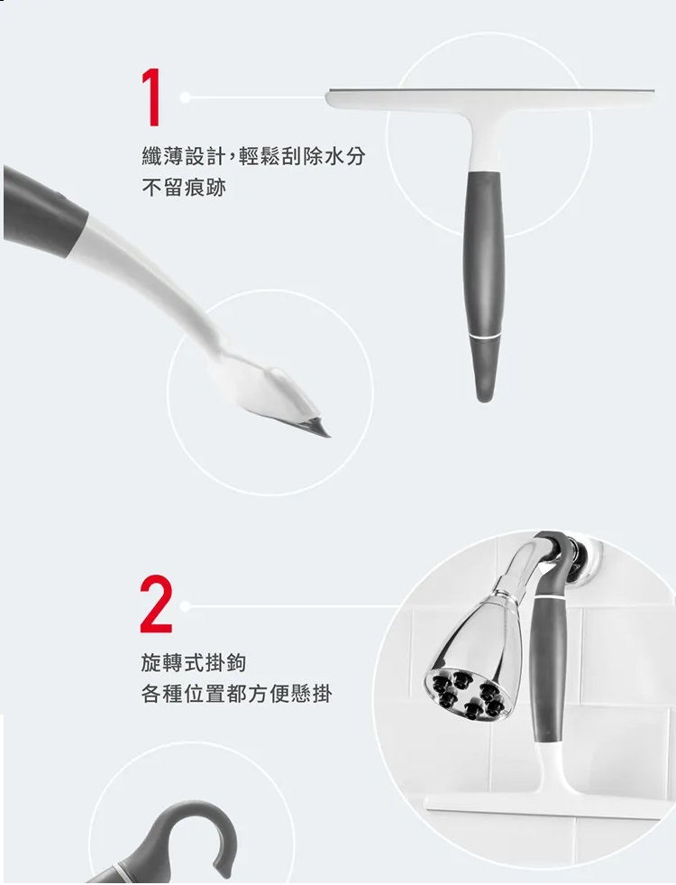 OXO 旋轉掛式刮水刀 旋轉式掛鉤設計 方便懸掛 淋浴門和牆壁、鏡子和窗戶適用