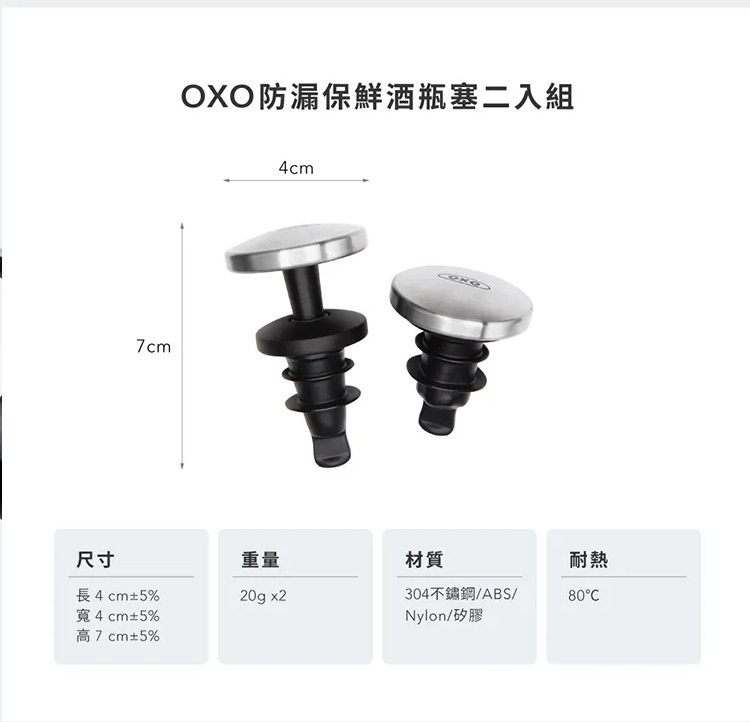 OXO 防漏保鮮酒瓶塞二入組 OXO 紅酒塞 葡萄酒塞 酒瓶塞