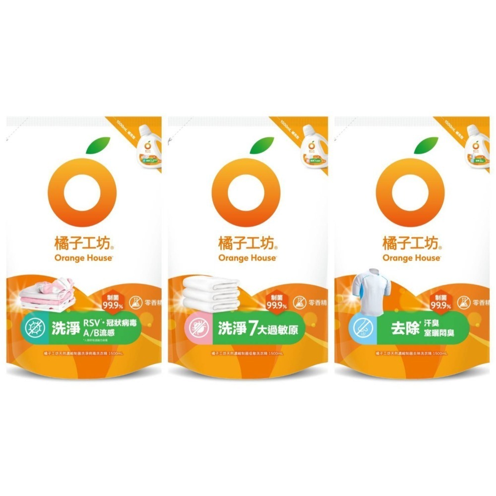 橘子工坊天然濃縮洗衣精補充包1500ml-制菌去味/制菌低敏/制菌洗淨病毒