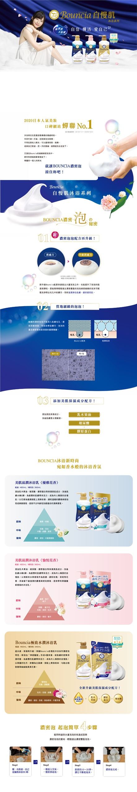 牛乳石鹼 Bouncia 美肌滋潤沐浴乳罐裝480ml/補充包360ml(優雅花香/愉悅花香型)