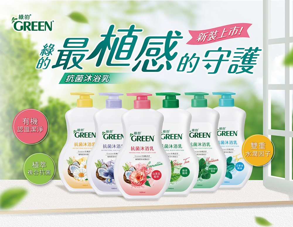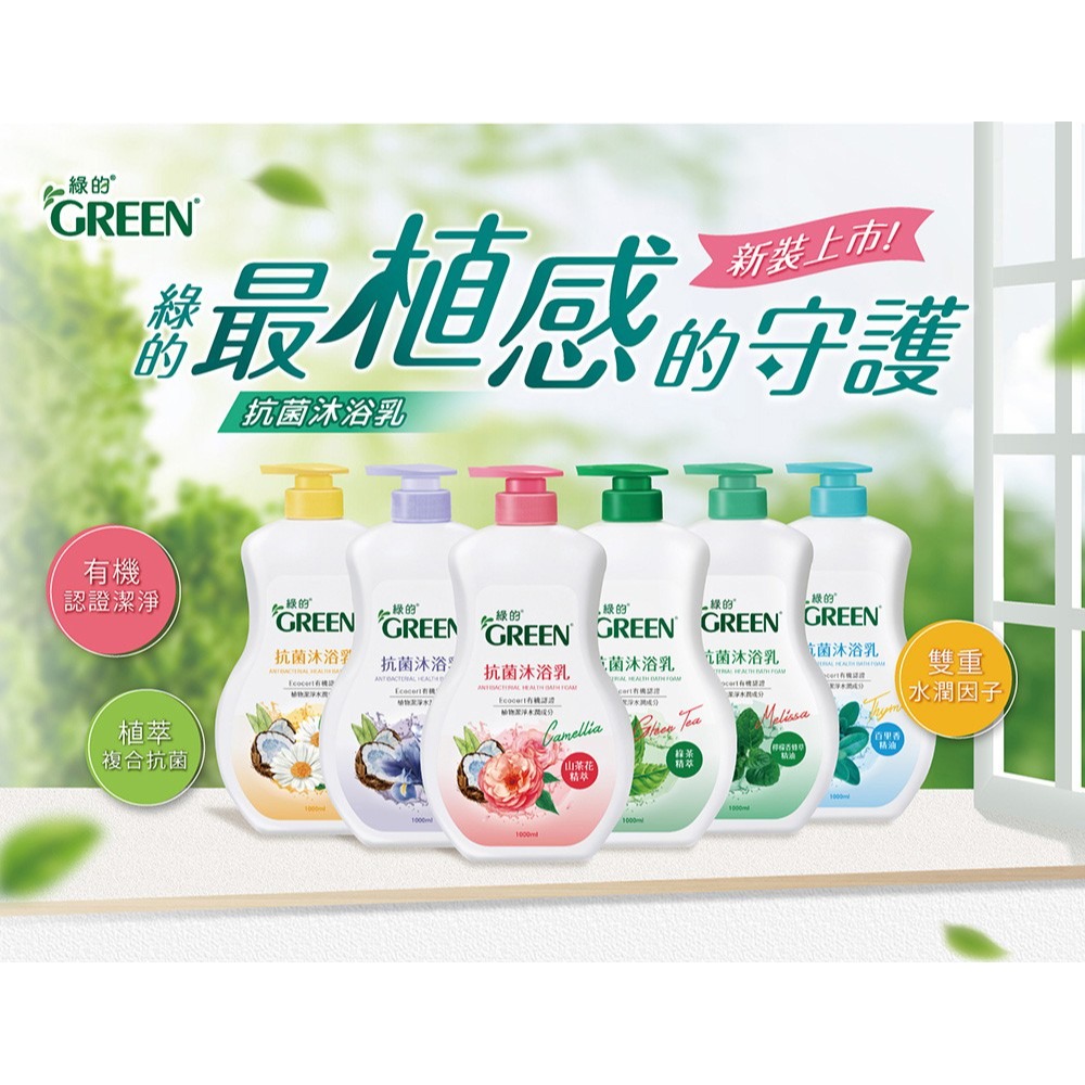 綠的抗菌沐浴乳1000ml-(山茶花精萃/洋甘菊精油/綠茶精萃/百里香精油/檸檬香蜂草精油/鳶尾花精萃)