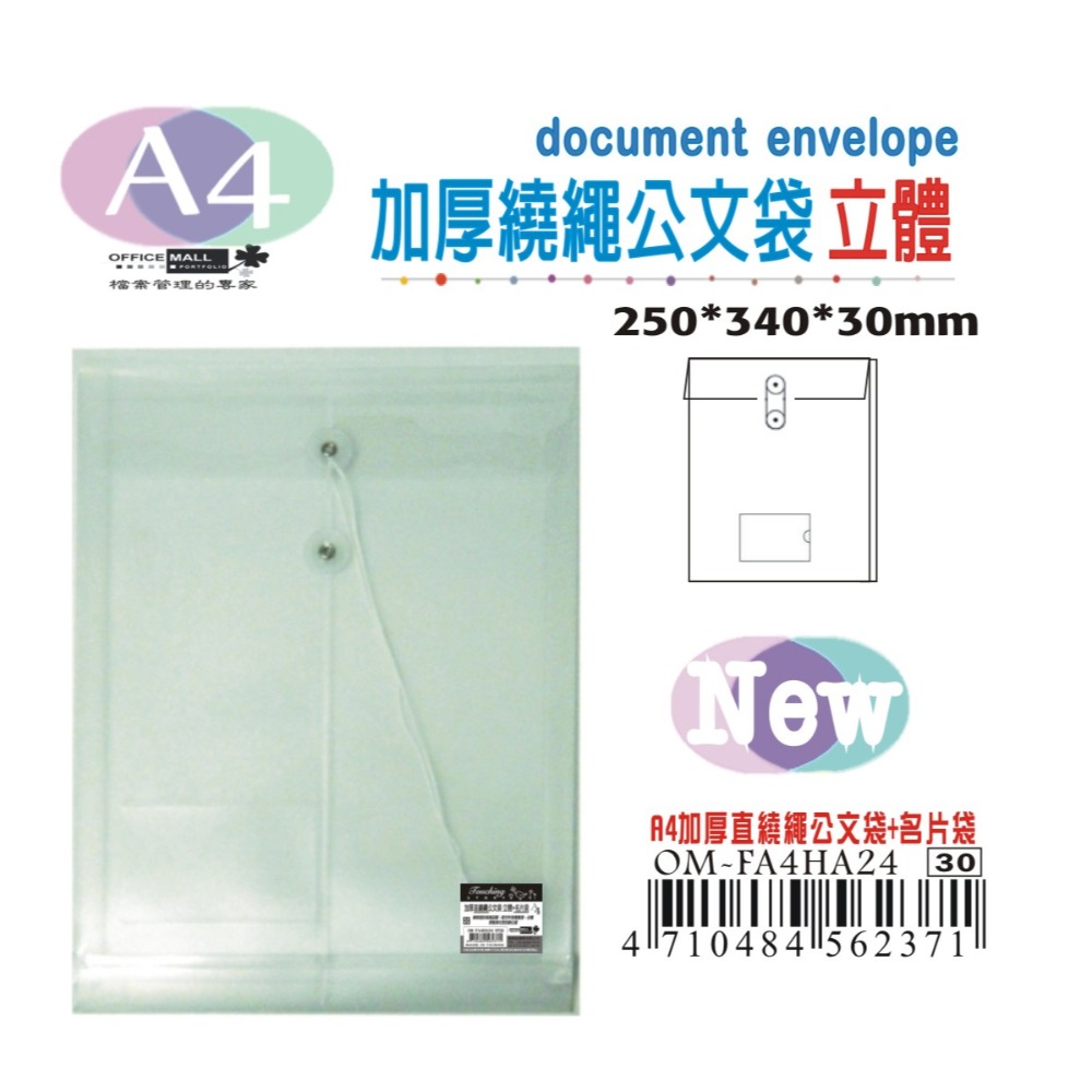【檔案家】A4繞繩直式公文袋+名片袋(立體) 透明 OM-FA4HA24