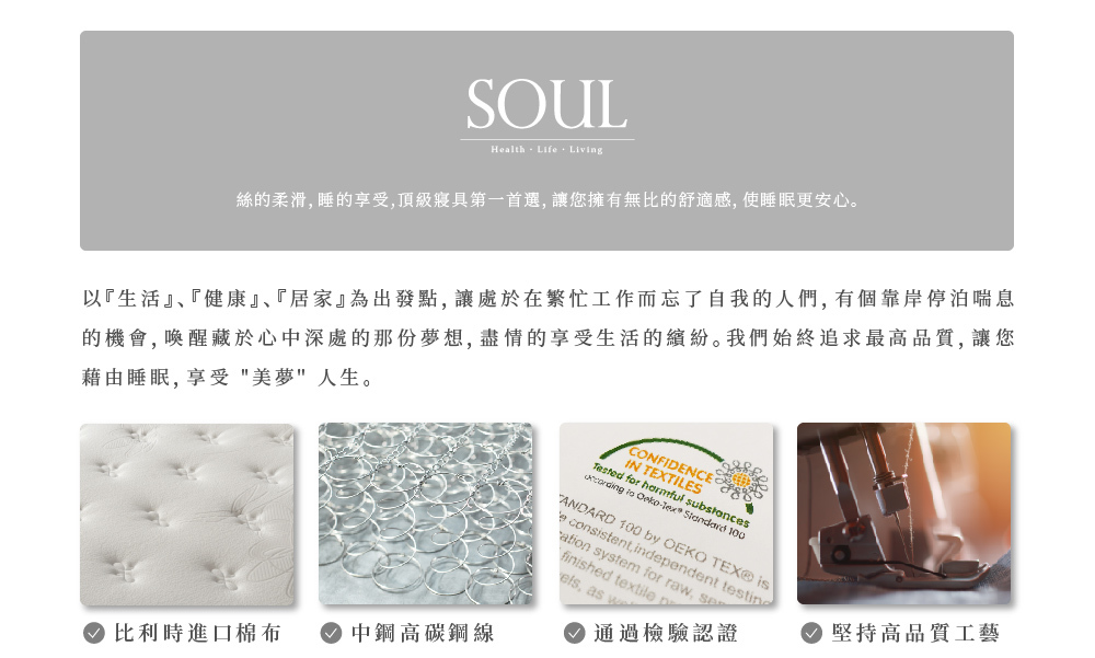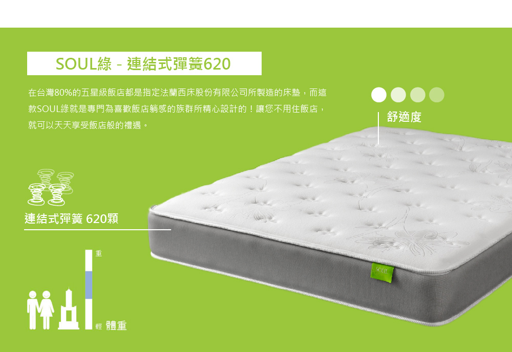 SOUL綠標 德泰彈簧床(法蘭西床製) (另售美國席夢思名床、德泰彈簧床 、老K牌彈簧床、三燕床墊、美國寢之堡、上品寢)