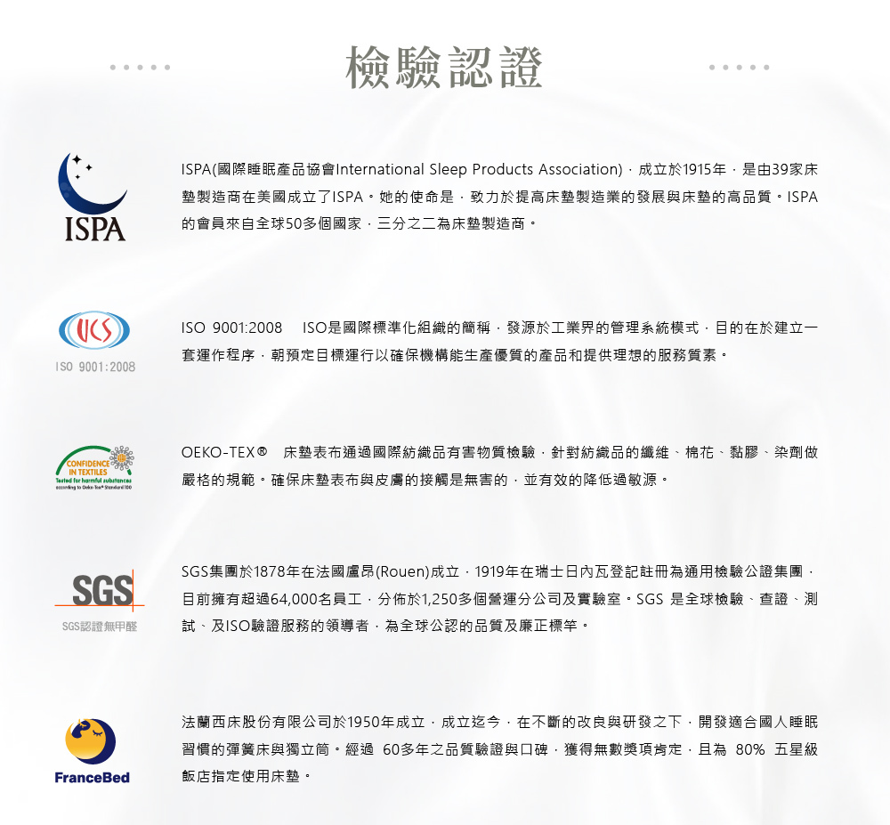 中鋼熱處理高碳鋼線製成彈簧|彈簧抗拉強度經SGS測試,可承受190kg/mm2拉力|嚴選1200g/m2純白針扎棉墊