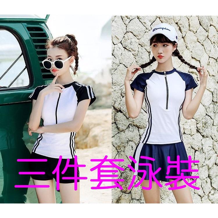 海軍風三件套泳裝 顯瘦韓國風女泳裝 保守泳裝 泳衣 女泳衣 溫泉泳衣 比基尼 少女泳衣 學生泳衣 三件套泳衣 運動泳裝