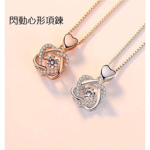 B827.閃動心形項鍊 韓版銀飾吊飾 首飾配件飾品 女飾品 銀飾品 防過敏 抗過敏 吊飾吊墜吊墬 情人節 送禮
