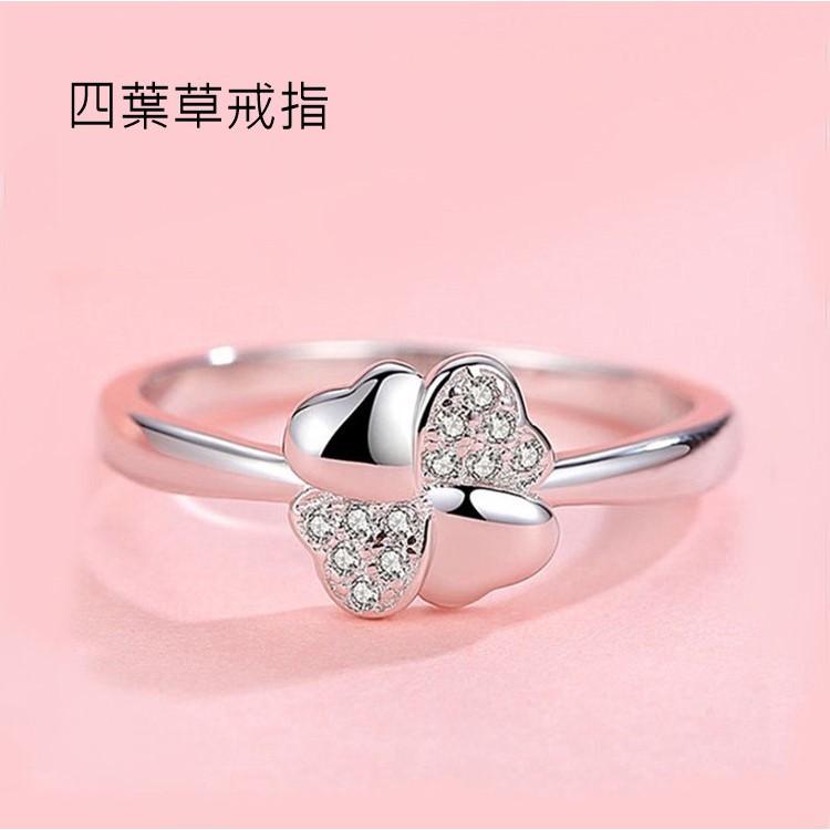 B551.四葉草戒指 銀飾 韓版男女戒指 銀戒 無分戒圍可調整大小 防過敏首飾配件飾品 女飾品 情人節 情侶戒 閨密