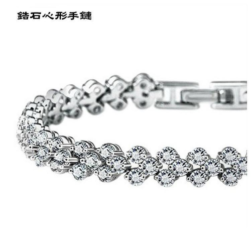 B096.鋯石心形手鏈 韓版銀飾 防過敏 抗過敏首飾配件飾品 女飾品 水鑽 手環 手鏈 手飾 銀手鐲 情人節情侶 送禮物