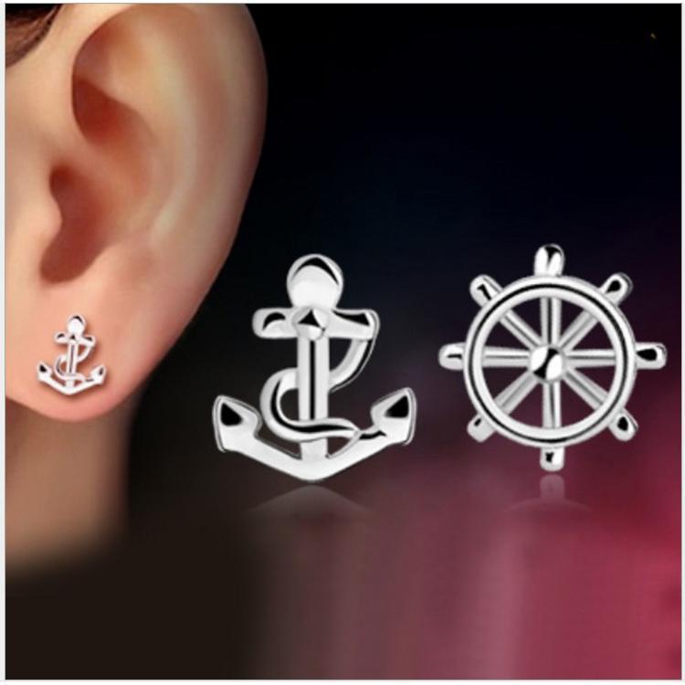 B119.船舵耳釘 韓版銀飾 首飾配件飾品防過敏 抗敏耳針 水鑽耳飾 耳釘 雙珠耳環 cat s shop ※一對價