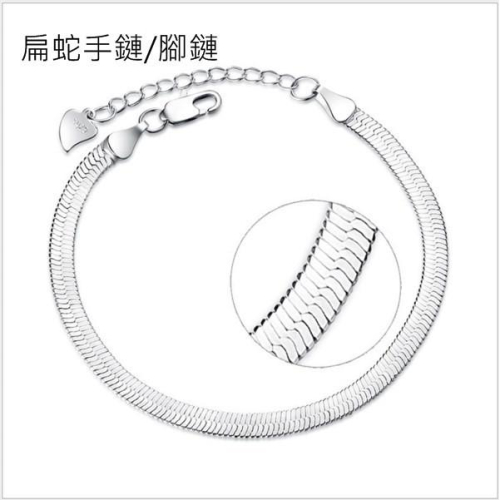 B242.扁蛇手鏈/腳鏈手鐲手環手鍊手飾 韓版銀飾 抗過敏防過敏首飾飾品配件 精緻質感送禮自用 情人節告白情侶閨蜜好友