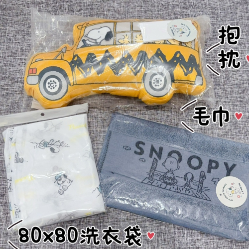 ❤️叮叮百貨❤️全新 HOYACASA專櫃品牌 Snoopy史努比 黃色校車造型抱枕+毛巾+洗衣袋