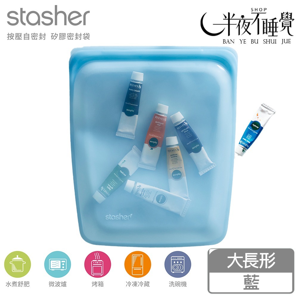 Stasher 大長形矽膠密封袋-藍 保鮮袋|食物袋|矽膠|耐熱 原廠公司貨 【ST0103002A】