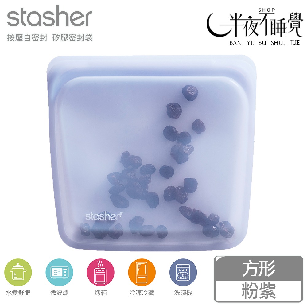 Stasher 方形矽膠密封袋-粉紫 保鮮袋|食物袋|矽膠|耐熱 原廠公司貨現貨 【ST0102008A】