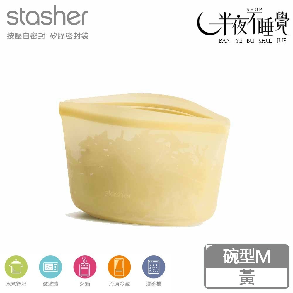 Stasher 碗形矽膠密封袋-M-黃 Bowl|保鮮袋|食物袋|矽膠|耐熱 原廠公司貨【ST0107018A】