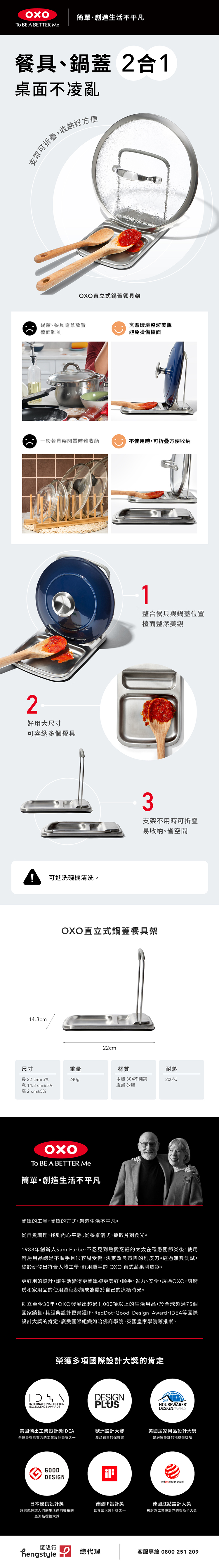 OXO 直立式鍋蓋餐具架 鍋蓋架|湯勺架|廚房收納架 原廠公司貨 【OX0102038A】