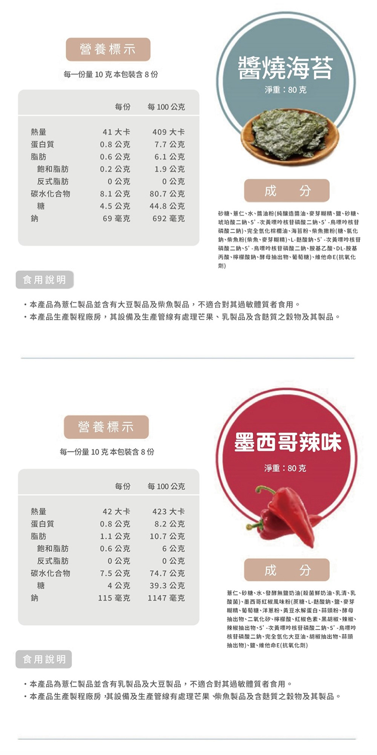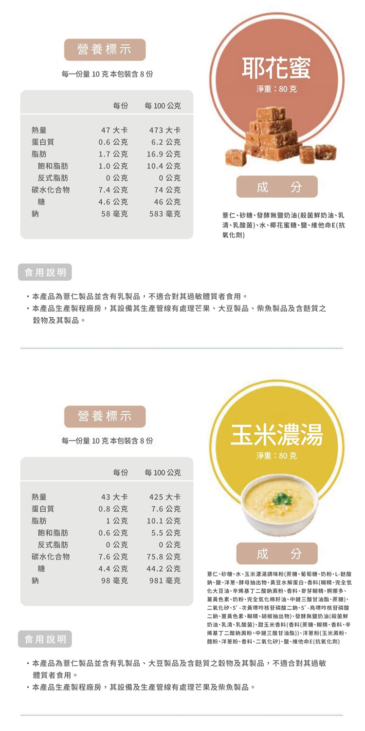 ·本產品為薏仁製品並含有大豆製品及柴魚製品,不適合對其過敏體質者食用。