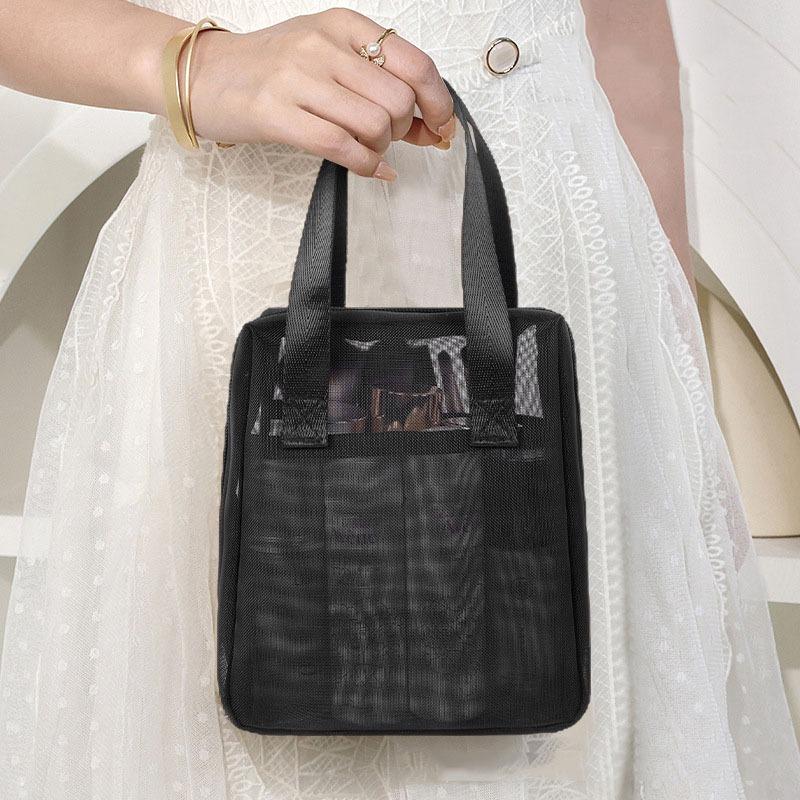 手提網紗化妝包【酪旅子】網紗化妝包 手提貝殼化妝包 化妝包 網紗包 透感網紗包 收納包 網紗手提包【0325】