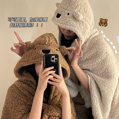 小熊絨毛披肩斗篷【酪旅子】披風毛毯 保暖毛毯 帶帽斗篷 小熊毛毯 披肩 披風斗篷 披肩 冬季防寒 午睡毯 【0250】
