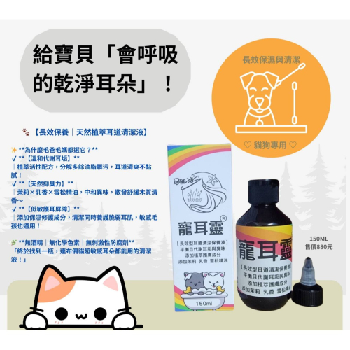 毛小孩專用耳道保養配方,協助耳道肌膚修護,具溫和平衡、代謝、舒緩、保護的作用,
