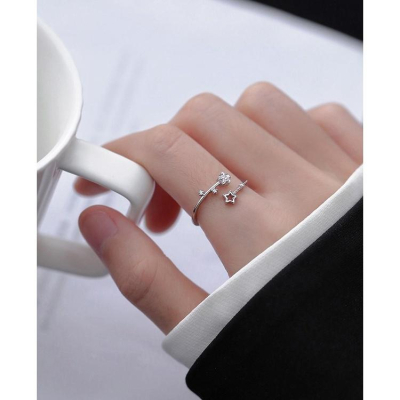 【Miss.情人節】[台灣發貨] 韓版s925耳環 星星戒指 開口指環戒指 女輕奢小眾精緻戒指 049