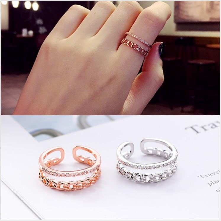 【Miss.情人節】日韓學生時尚開口麻花鏈條戒指 復古誇張潮人 微鑲鋯石個性女戒指指環 1026