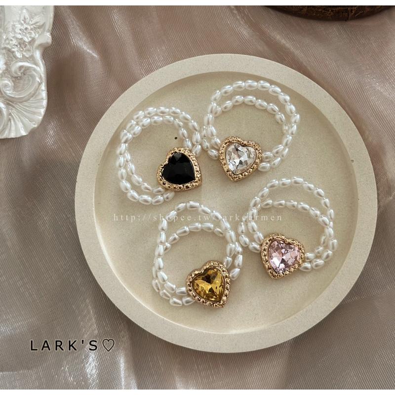 𝗟𝗔𝗥𝗞'𝗦 ♡ 現貨|特惠款⭐巴洛克式 復古仿愛心鑽雙層珍珠戒指|𝟒色