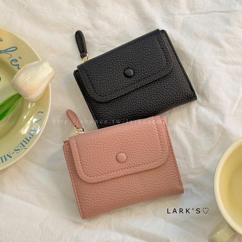 𝗟𝗔𝗥𝗞'𝗦 ♡ 現貨|質感小圓豆 荔枝紋 兩摺短夾 零錢包|𝟐色