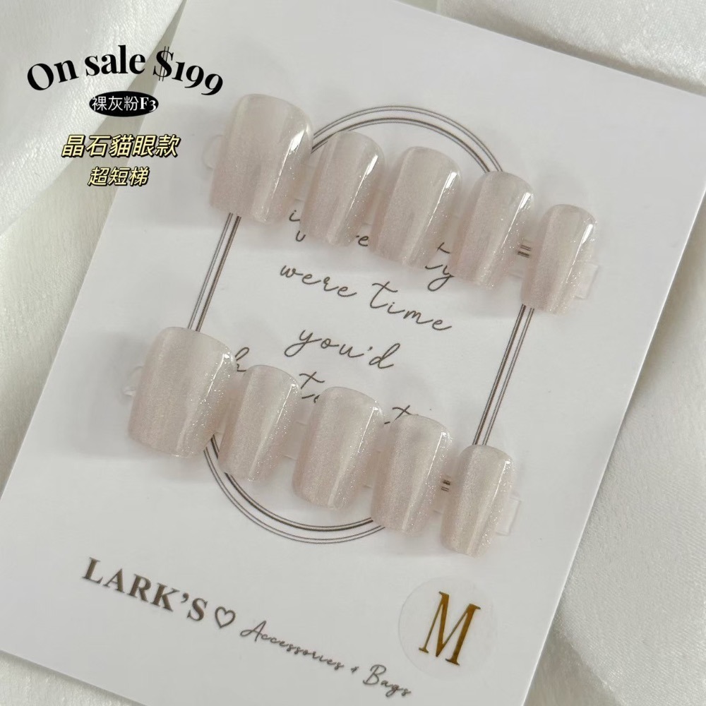 品名:裸灰粉F03 晶石貓眼超短T穿戴甲