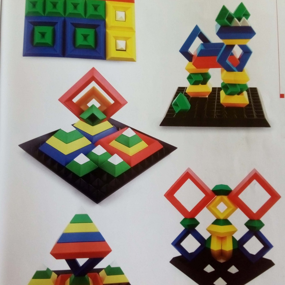 錐體切割的獨特構造,可以堆疊、崁入和卡榫互扣;訓練手腦協調、平衡感和空間概念。