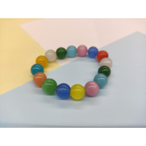 TINGMI小舖 七彩色貓眼石圓珠手串8MM