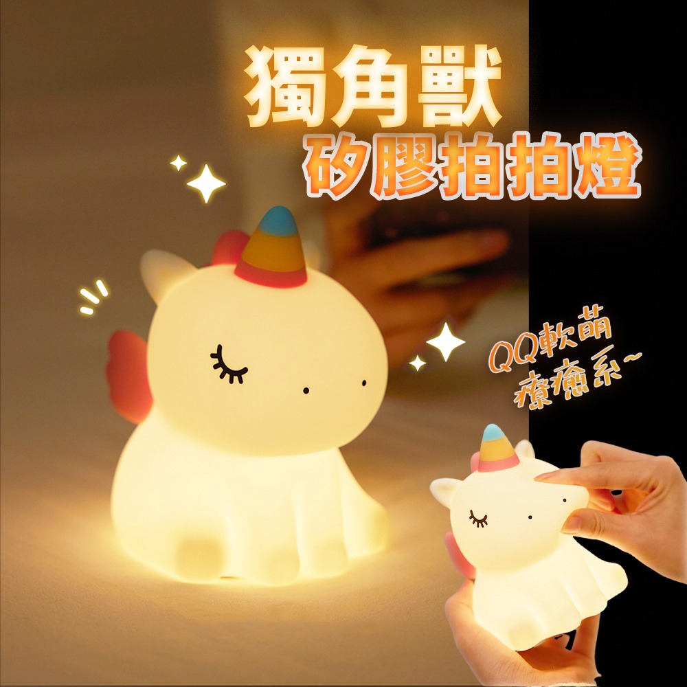 超新品促銷🛒 獨角獸小夜燈💓 可愛LED舒眠燈 助眠燈 捏捏燈 床頭燈 觸控夜燈 拍拍燈 交換禮物 矽膠燈 伴睡燈
