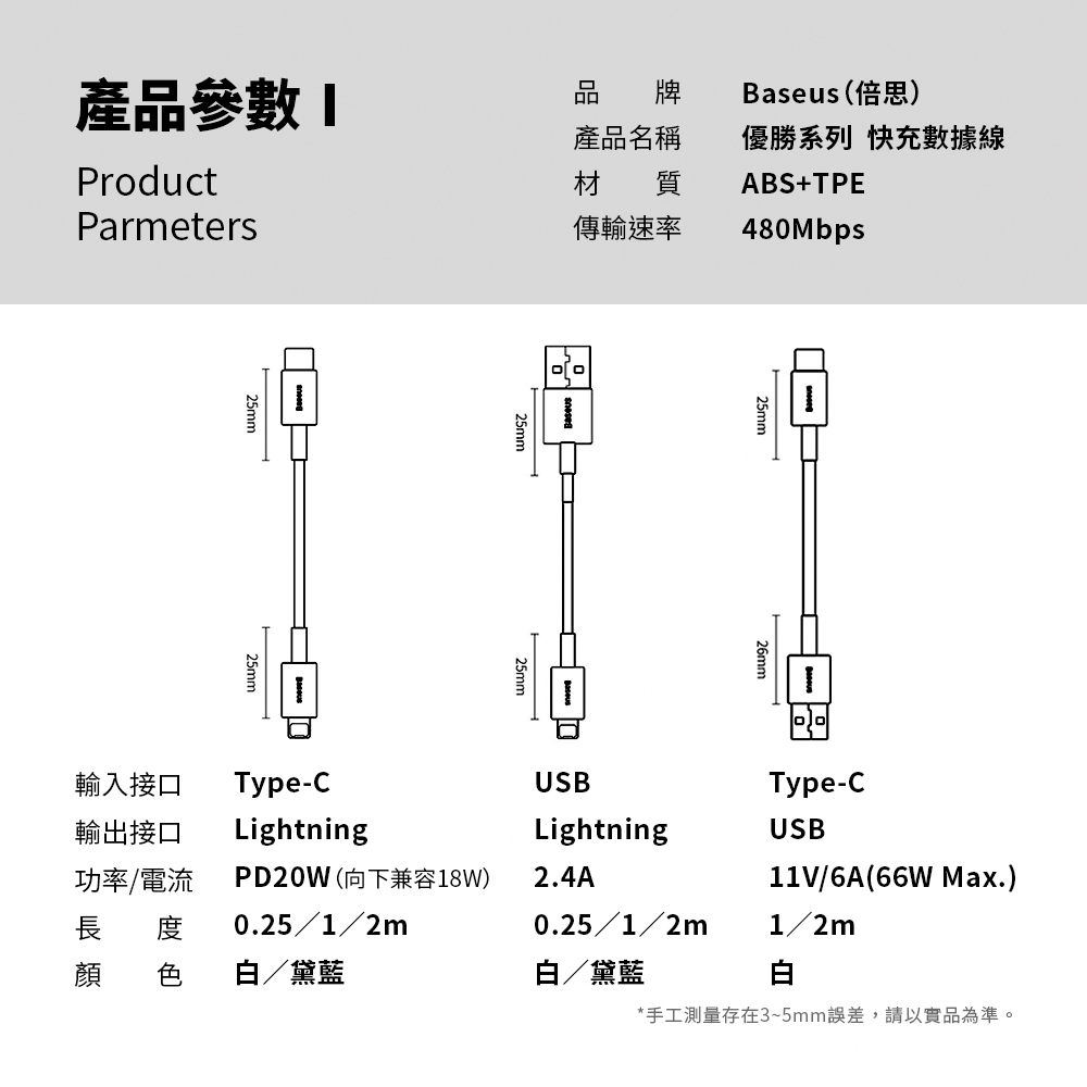 * 倍思 優選系列 快充傳輸充電線