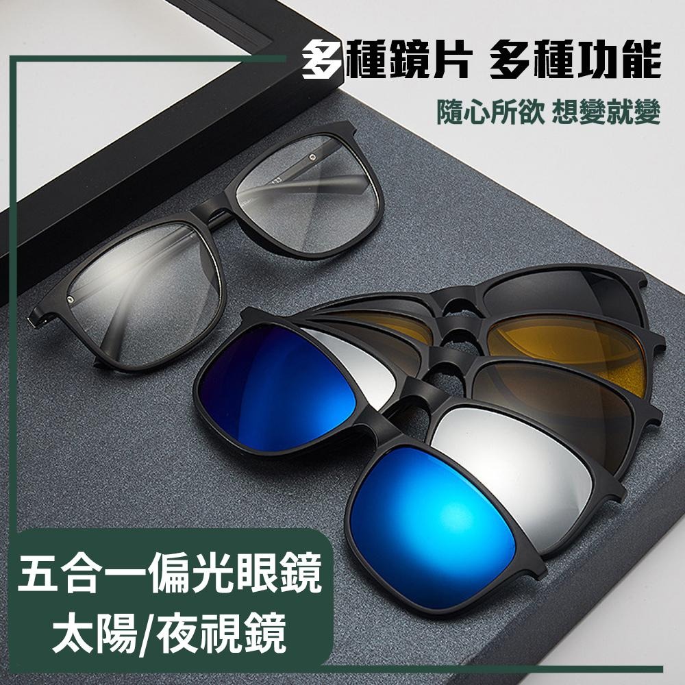 😎5合1套鏡 偏光墨鏡😎偏光太陽眼鏡 磁吸鏡片 隨意更換 夜視鏡 偏光鏡 時尚單品 水銀片 開車 可配近視片 近視眼鏡