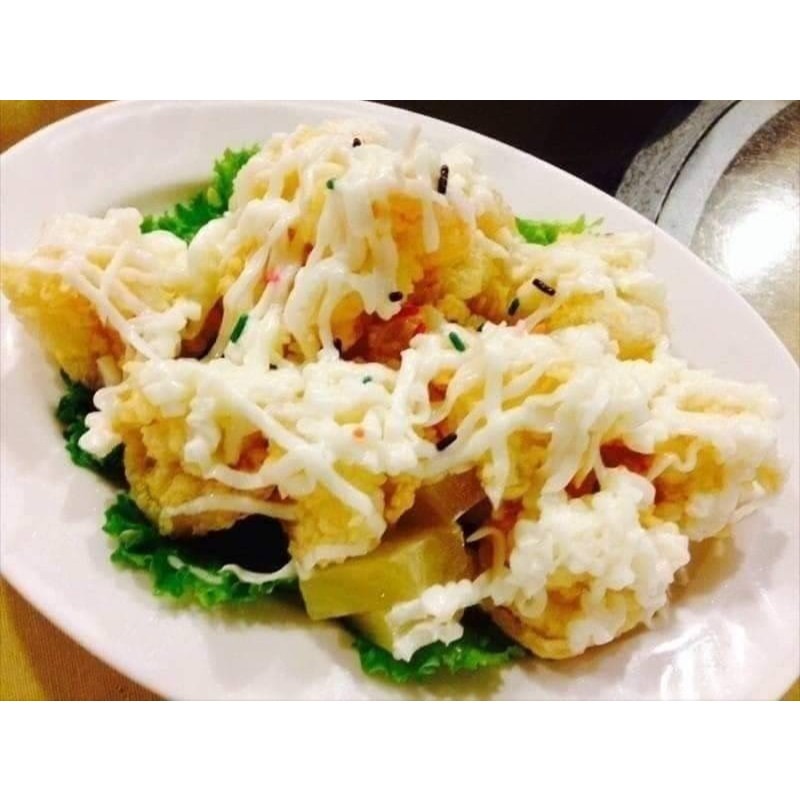 ✔️不必解凍,直接油炸後起鍋 再以鳳梨片舖盤