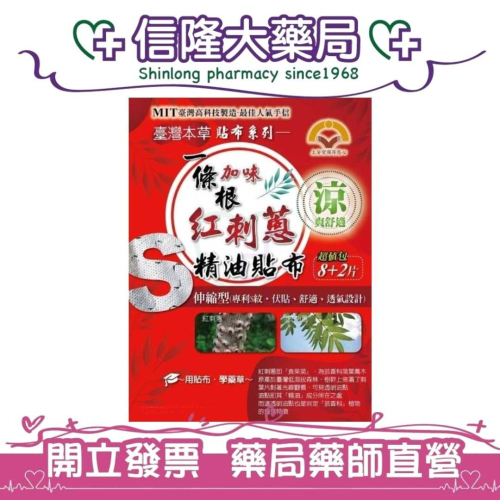 上安堂 一條根加味紅刺蔥精油貼布(S紋伸縮型) 10片裝