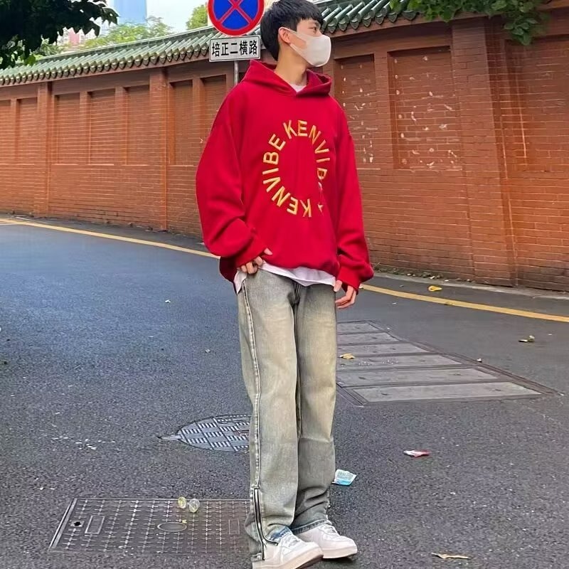 『癮品流行』夏季長褲 水洗做舊復古黃泥牛仔褲 束口褲 直筒褲 長褲男側邊拉鏈 S-3XL