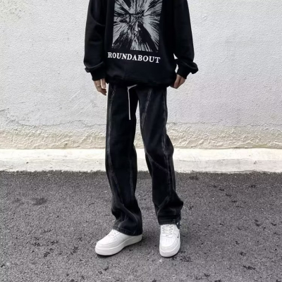 『癮品流行』美式復古水洗做舊 黃泥色牛仔長褲 直筒褲 束腿褲 九分褲 長褲 休閒百搭 男女同款 S-3XL