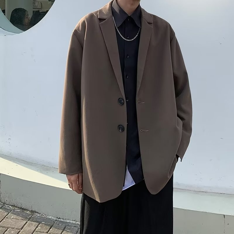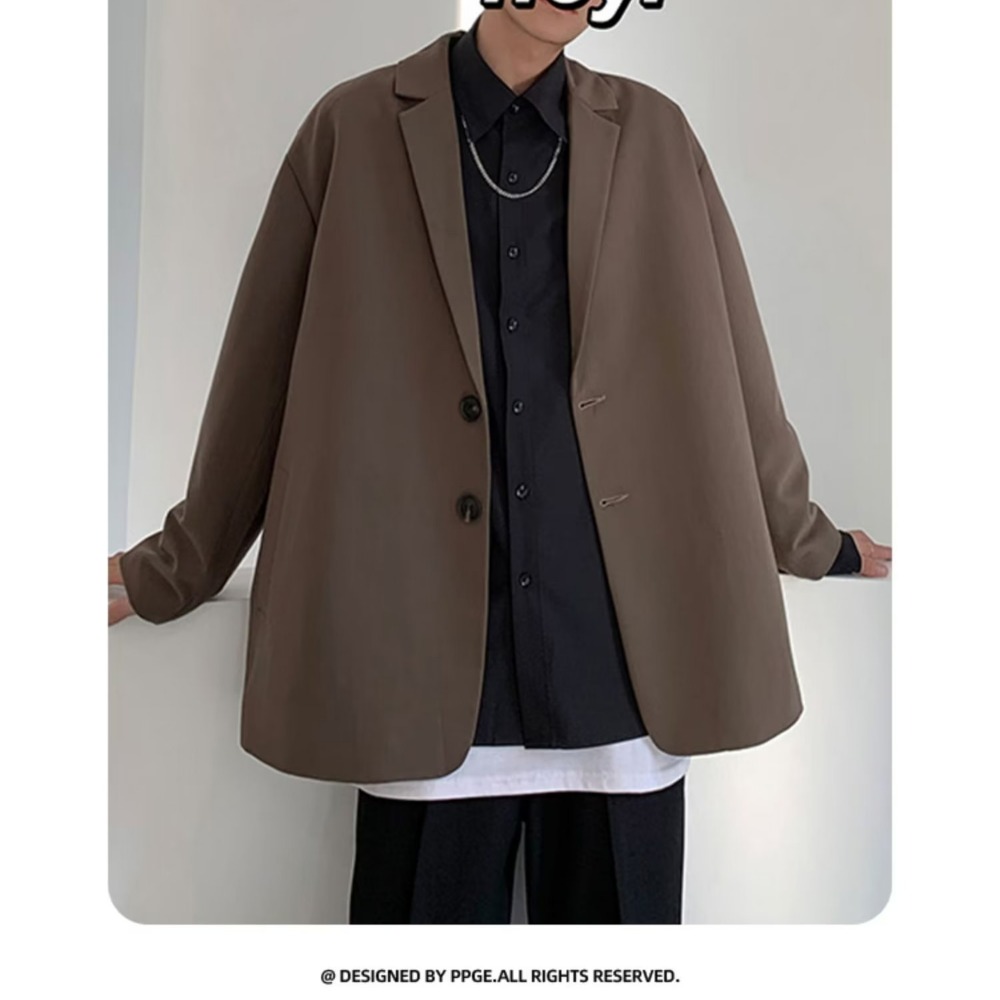 『癮品流行』單排扣簡約外套 韓版商務西裝外套 純色休閒西裝 男生西裝 寬鬆百搭 M-2XL