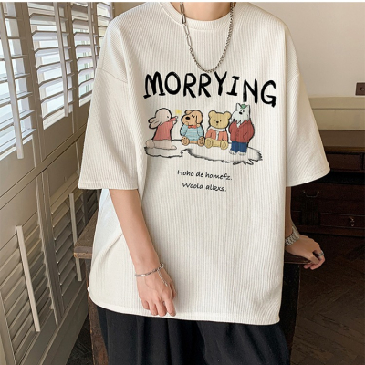 『癮品流行』夏季短袖 韓式華夫格字母印花T恤 男生T恤 五分袖 圓領上衣 大碼寬鬆 休閒百搭 M-5XL