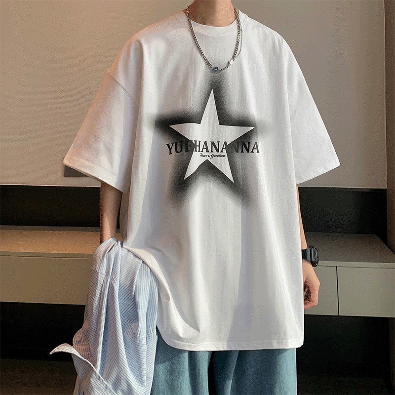『癮品流行』美式純棉星星印花T恤 五分袖 圓領上衣 oversize 休閒百搭 大碼寬鬆 M-5XL