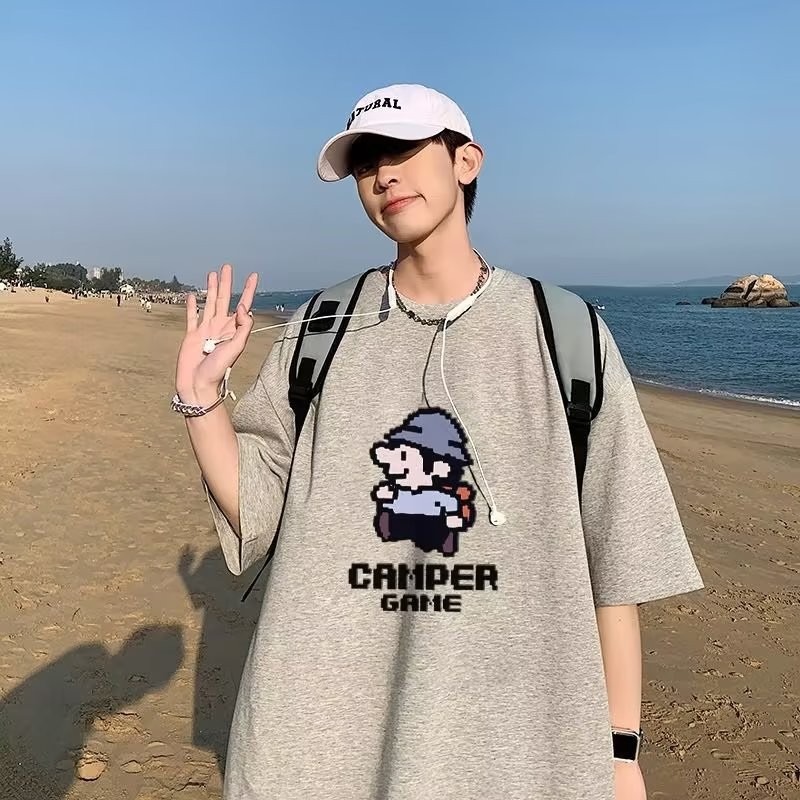 『癮品流行』小矮人印花 美式純棉T恤 圓領上衣 五分袖 設計感 休閒百搭 大碼寬鬆 M-5XL