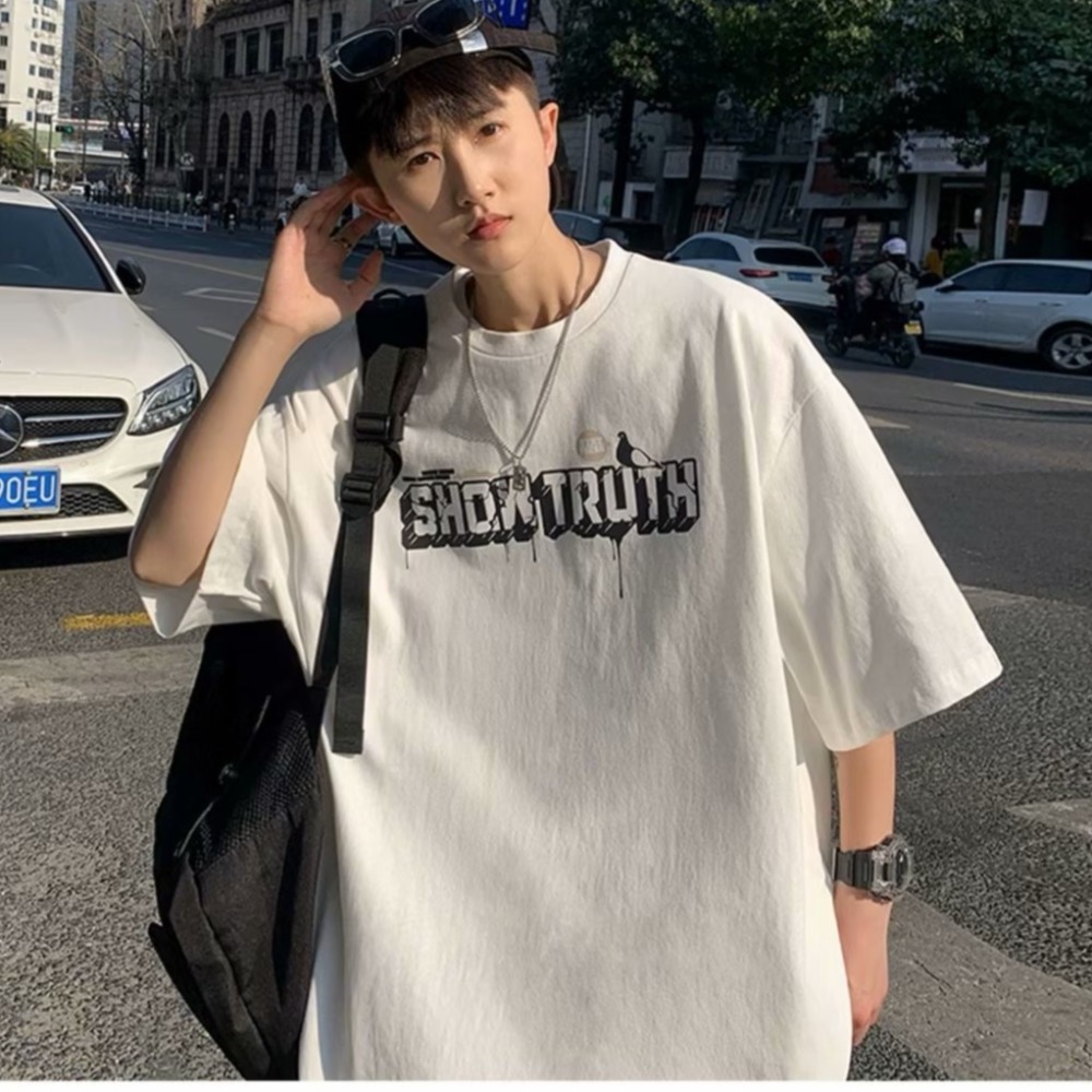 『癮品流行』美式重磅純棉字母印花T恤 男生短袖 五分袖 圓領上衣 休閒百搭 大碼寬鬆 M-5XL