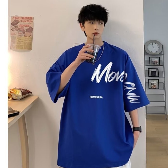 『癮品流行』港風復古純棉短袖T恤 圓領上衣 五分袖 夏季T恤 休閒百搭 寬鬆大碼 oversize M-5XL