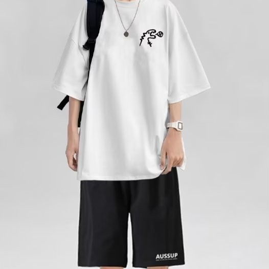 『癮品流行』休閒套裝男 夏季套裝男 短袖短褲套裝男 T恤男 圓領上衣 五分褲 純色簡約 休閒百搭 大碼寬鬆 M-5XL