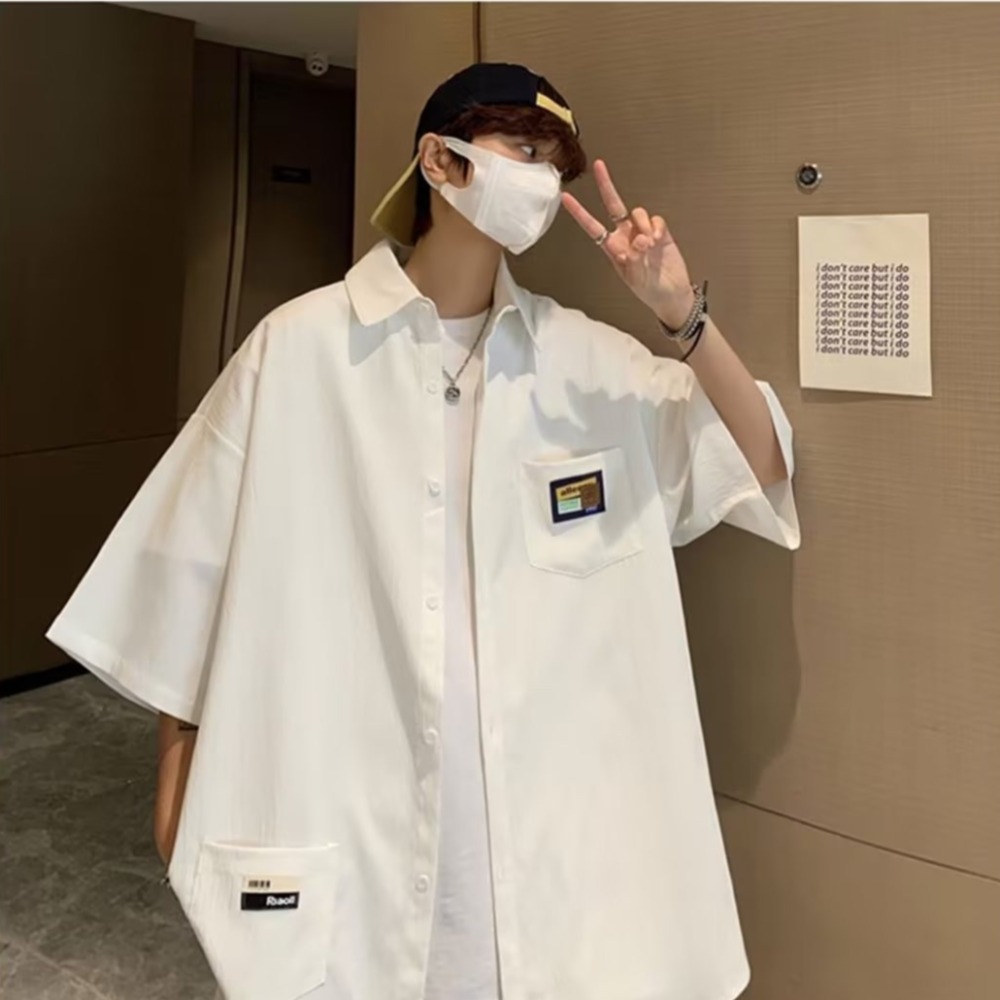 『癮品流行』男生夏季襯衫 冰絲透氣短袖襯衣 翻領上衣 開衫多口袋設計感 休閒襯衫百搭短袖襯衫 M-5XL