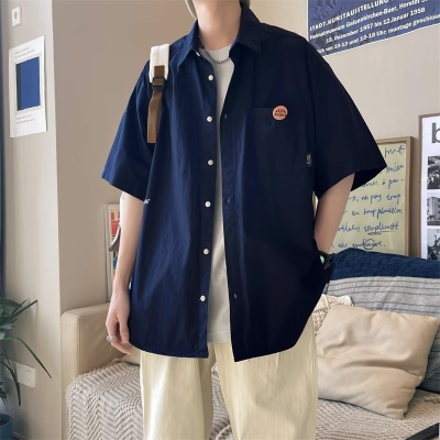 『癮品流行』男生夏季襯衫 襯衫男 襯衫外套 五分袖襯衣 翻領襯衫 原宿風設計感 休閒百搭 M-3XL